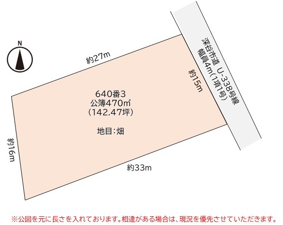 ●測量図がありません(境界非明示) ●農地転用5条許可を要します ●地区除外決済金を要します(130円/㎡) ※上記費用は買主負担です